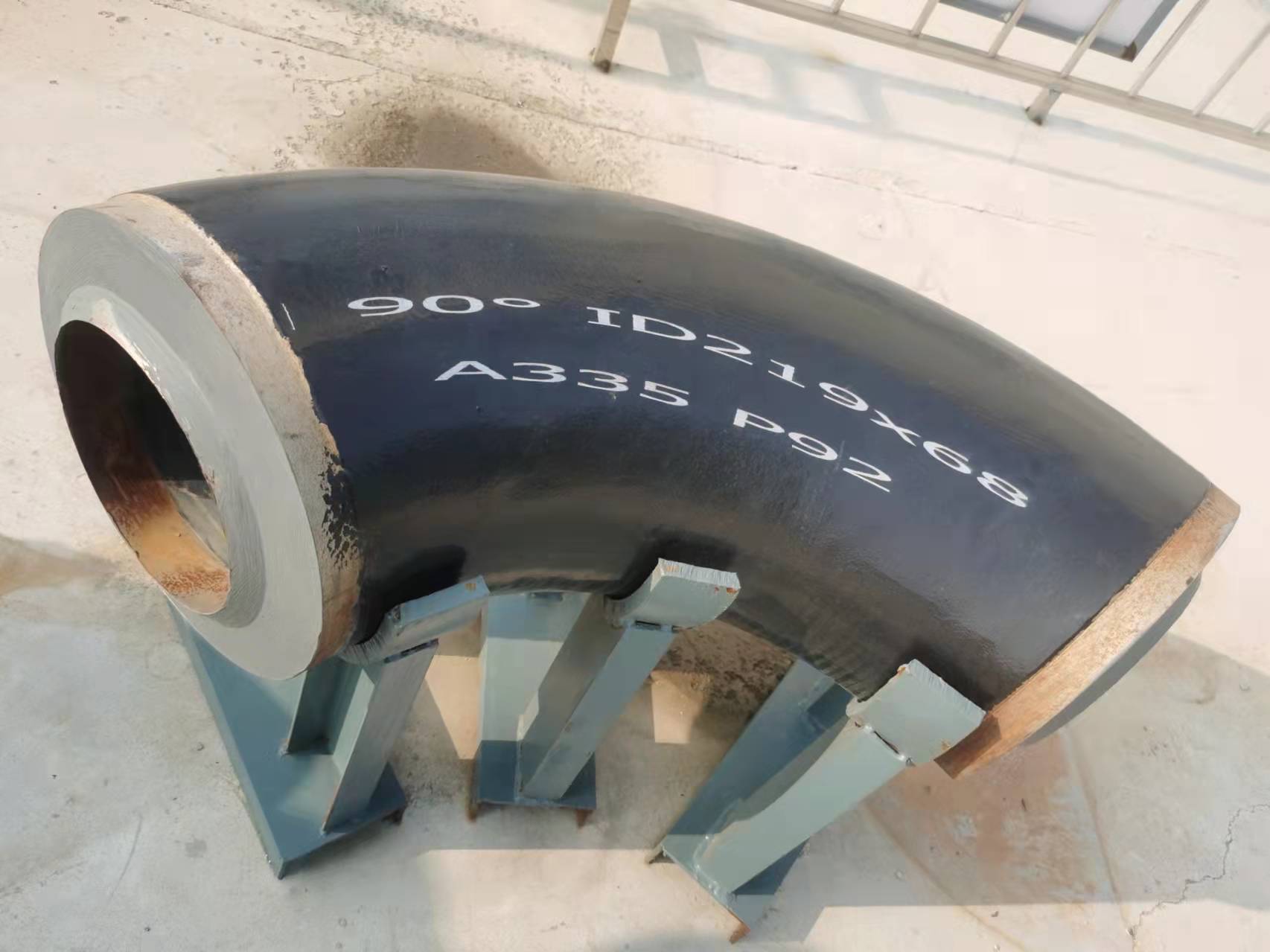 7、A335P92合金彎頭熱處理制度:正火加回火,正火溫度1040℃~1080℃,回火溫度760℃~790℃;S>70mm的鋼管可淬火加回火,淬火溫度不得低于1040℃,回火溫度760℃~790℃。